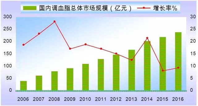 國內(nèi)調(diào)血脂總體市場規(guī)模