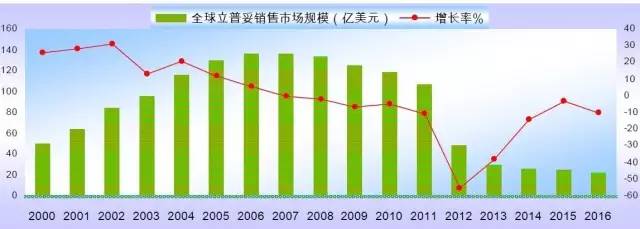 新世紀第一個10年是全球他汀類藥物的火紅年代。美國輝瑞的阿托伐他汀品牌藥物“立普妥”自2004年銷售上百億美元后,連續(xù)8年銷售均超過百億美元,蟬聯(lián)全球榜首?;衔飳@^期、仿制藥上市后,2016年立普妥仍取得17.58億美元的銷售成績。迄今為止,立普妥已創(chuàng)造了1500多億美元的奇跡。