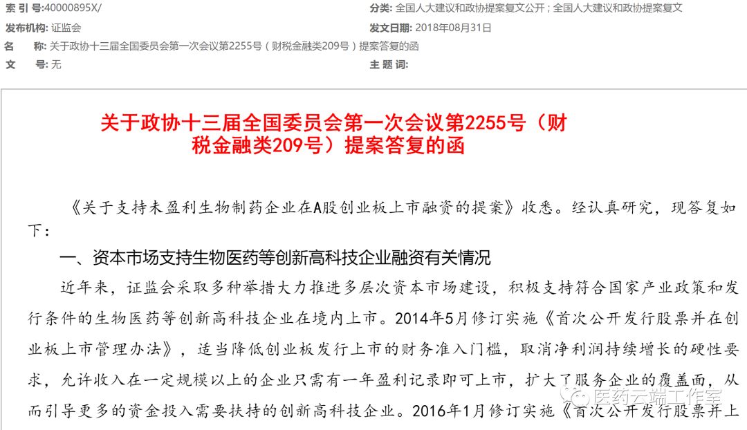 8月31日,根據(jù)中國(guó)證監(jiān)會(huì)官網(wǎng)顯示,關(guān)于對(duì)政協(xié)《支持未盈利生物制藥企業(yè)在A股創(chuàng)業(yè)板上市融資的提案》,證監(jiān)會(huì)回函表示,近年來,證監(jiān)會(huì)采取多種舉措大力推進(jìn)多層次資本市場(chǎng)建設(shè),積極支持符合國(guó)家產(chǎn)業(yè)政策和發(fā)行條件的生物醫(yī)藥等創(chuàng)新高科技企業(yè)在境內(nèi)上市。