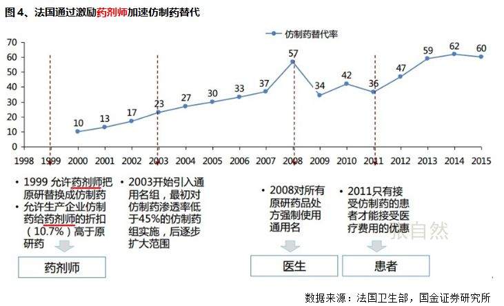 而縱觀世界發(fā)達(dá)國家經(jīng)驗(yàn),藥師審核處方也是仿制藥替代原研的重要保障,如法國仿制藥替代率由2000年的10%提高到了2015年的60%,在整個替代過程中,藥師都在發(fā)揮著重要的作用。