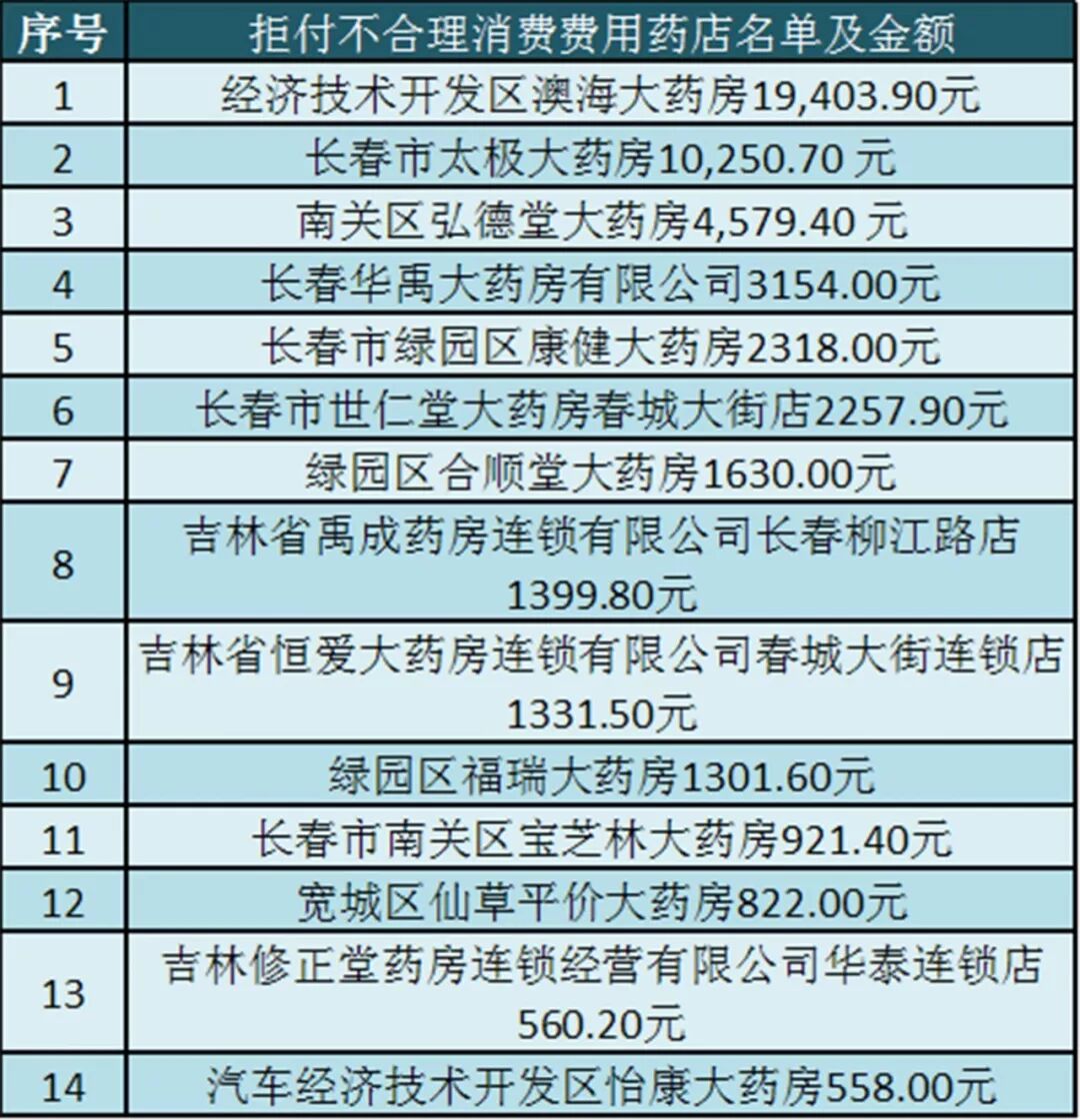 拒付15家定點零售藥店代劃社會保障卡消費費用及不合理消費費用共計50751.40元
