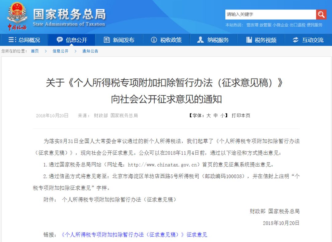 重磅!個稅專項附加扣除政策來啦!新一輪個人所得稅改革的一大亮點——專項附加扣除政策20日揭開面紗。當天起,財政部、國家稅務總局會同有關部門起草的《個人所得稅專項附加扣除暫行辦法(征求意見稿)》在兩部門官網(wǎng)開始為期兩周的向全社會公開征求意見。