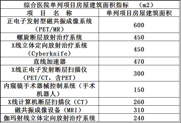 2.本表未包括的大型醫(yī)療設(shè)備,按實(shí)際需要確定面積。