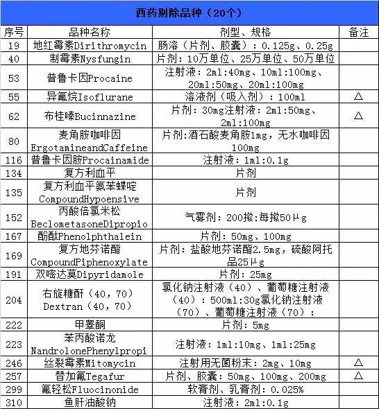 2018版基藥目錄中,有22個藥品被徹底調(diào)出,其中化藥20個,中成藥2個。具體名單如下: