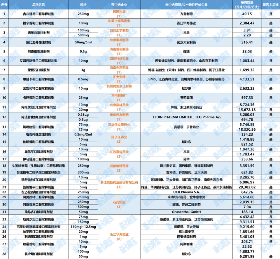 下午13點(diǎn)后,根據(jù)上?,F(xiàn)場(chǎng)傳來信息,31個(gè)品種的預(yù)中選企業(yè)名單公布,結(jié)合一致性評(píng)價(jià)情況,我們將預(yù)中選企業(yè)名單以及未中選原研和過一致性評(píng)價(jià)企業(yè)名單做一整理如下: