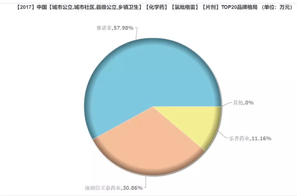 在市場(chǎng)格局方面,氯吡格雷片有將近60%的市場(chǎng)由原研企業(yè)賽諾菲所占據(jù),其余市場(chǎng)信立泰、樂普藥業(yè)分別占據(jù)30.86%、11.16%。