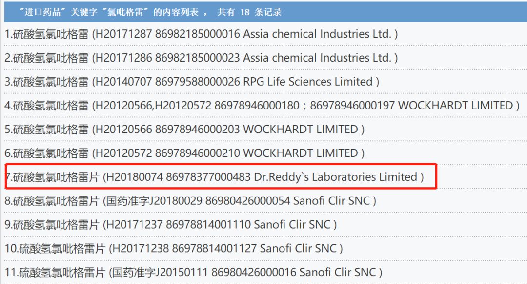 據(jù)該公號(hào)信息,印度大型制藥企業(yè)Dr.Reddy`s Laboratories Limited(瑞迪博士)的氯吡格雷仿制藥歷時(shí)11年,在國內(nèi)通過NMPA審批,于2018年11月30日發(fā)證。